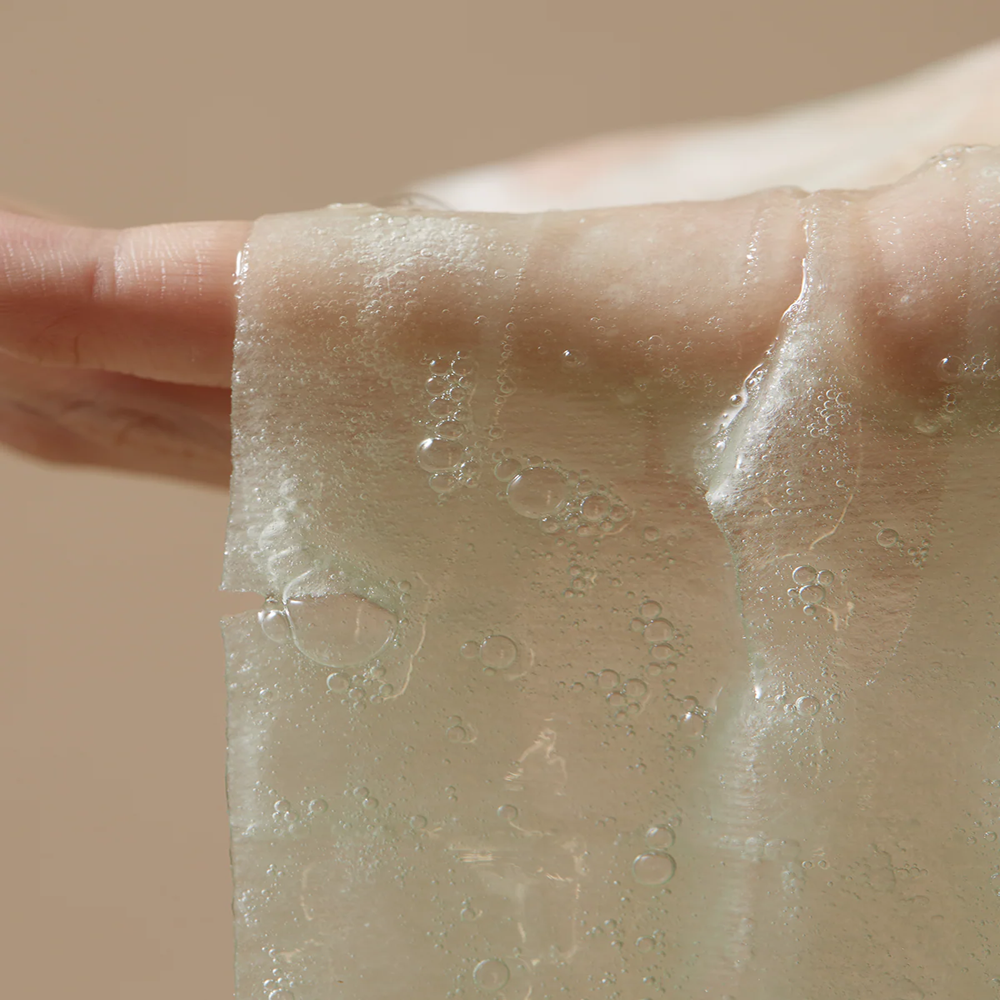 This sheet mask is made with plant-based cellulose fiber enriched with 61% of Mugwort extract. The texture delivers a rich moisture feeling without the heaviness and helps the skin control sebum production and reverse skin damage.