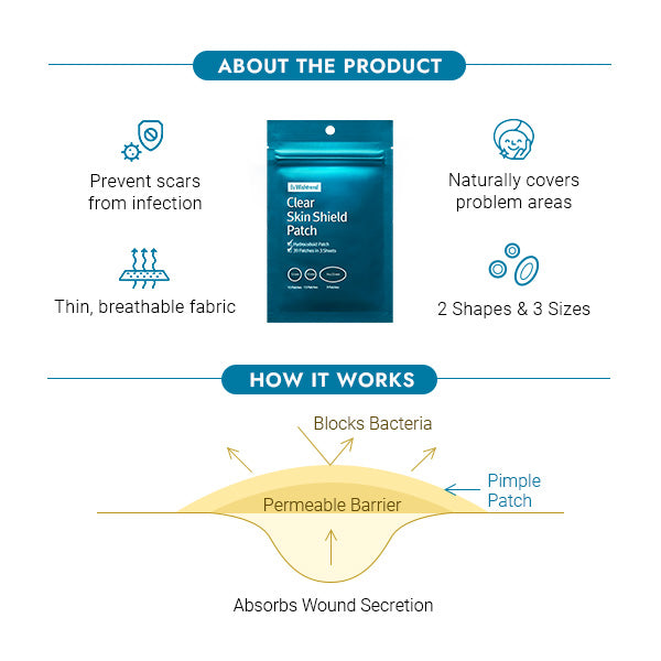 "39 Patches in 3 sizes / All Skin Types / Made in Korea EXP: 36M from MFD New and Renewed Clear Skin Shield Patch is here! For almost a year our product development team have reached out to our Wishtrenders through surveys to hear how we can improve the product. We want to thank our Wishtrenders once again for participating and sharing feedback helping us create a better product. 2 Shapes: Circular, Oval 3 Sizes: 10mm, 12mm, 14x23mm 39 Patches in 3 Sheets: 10mm * 15 Patches, 12mm * 15 Patches, 14x23mm * 9 Patches This hydrocolloid acne patch protects the skin against dirty water, dust and physical contact. The thin, breathable fabric quickly absorbs impurities while naturally covering problem areas. Irritation-free spot care for breakouts and pimples."
