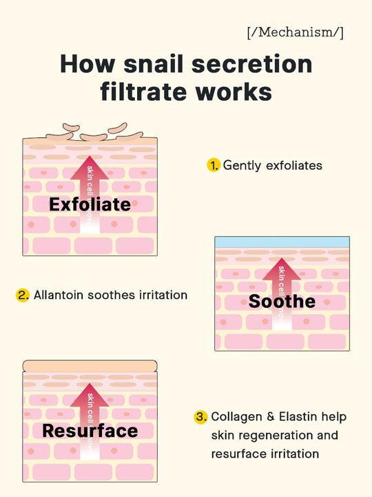 ? 74.3% Triple Snail Complex : A complex that combines the existing hydrating and plumping effects of snail secretion filtrate and fortifies it with the anti-aging, pore contracting benefits of Black Snails and the anti-bacterial, antioxidant and UV protection effects of Gold Snails and more ? 5% niacinamide : brightening the skin for simultaneous plumping & radiance care, strengthening skin's barrier ? Glutathione : Improving skin tone and skin complexion