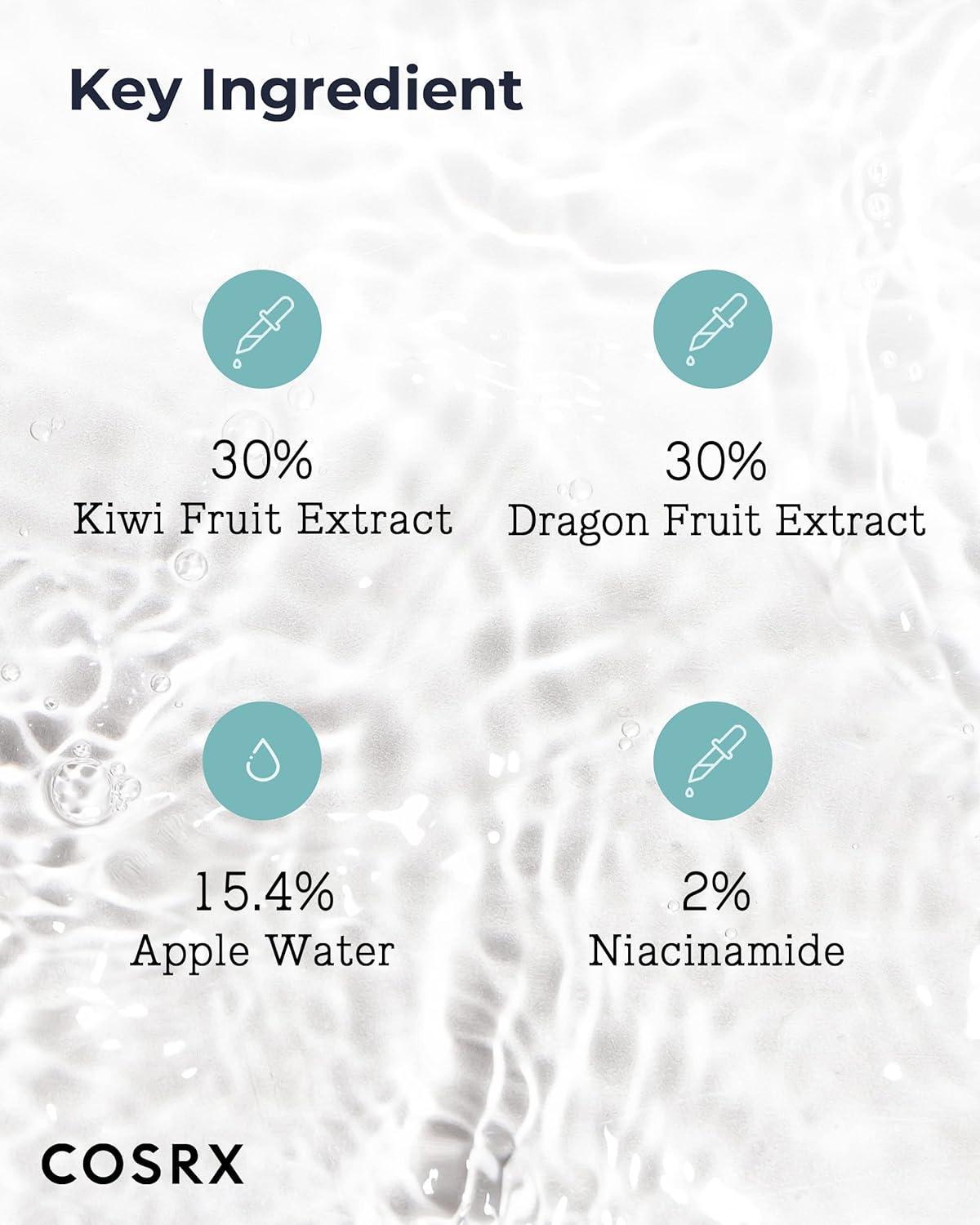 ? 62% COSRX GOLDEN-RX Complex : Utilizes fruit peels that are often discarded but are in fact more nutritious than the fruit itself (Pitahaya Extract, Kiwi Extract) ? AHA (16% apple water) + BHA (17% white willow bark water) : Remove accumulated dead skin cells and vitamin C to revitalize tired skin