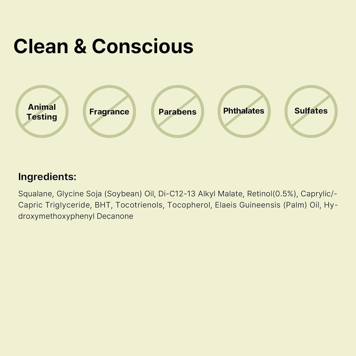 Squalane, Glycine Soja (Soybean) Oil, Di-C12-13 Alkyl Malate, Retinol(0.5%), Caprylic/Capric Triglyceride, BHT, Tocotrienols, Tocopherol, Elaeis Guineensis (Palm) Oil, Hydroxymethoxyphenyl Decanone