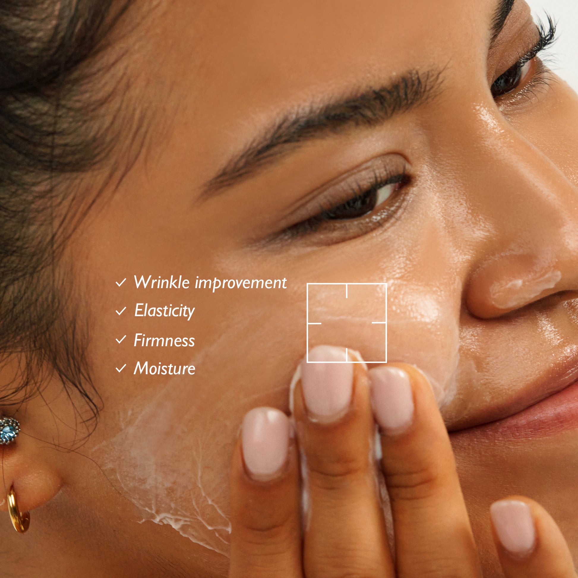Pamper your skin with this multifunctional face cream providing anti-aging, moisturizing, soothing and brightening care all in one go. 5 Peptide Complex restores firmness in saggy skin, while squalane and ceramide NP saturate skin with moisture. Caffeine in the mix brightens dull skin. The vegan formula is infused with 150ppm of cica extract to keep skin calm and hydrated. The benefits of this product An all-in-one vegan cream enriched with 5 Peptide Complex to offer care for signs of aging, improving skin firmness and appearance of fine lines and wrinkles, while strengthening skin barrier. Formulated with Hydrolyzed Soy Protein and Adenosine to moisturize skin and promote skin elasticity. Contains Squalene and Caffeine to brighten dull skin and help depuff, while preventing moisture loss. Free of potentially harmful ingredients such as Silicones, drying alcohol and artificial fragrance. Skin irritation test completed, suitable for sensitive skin.