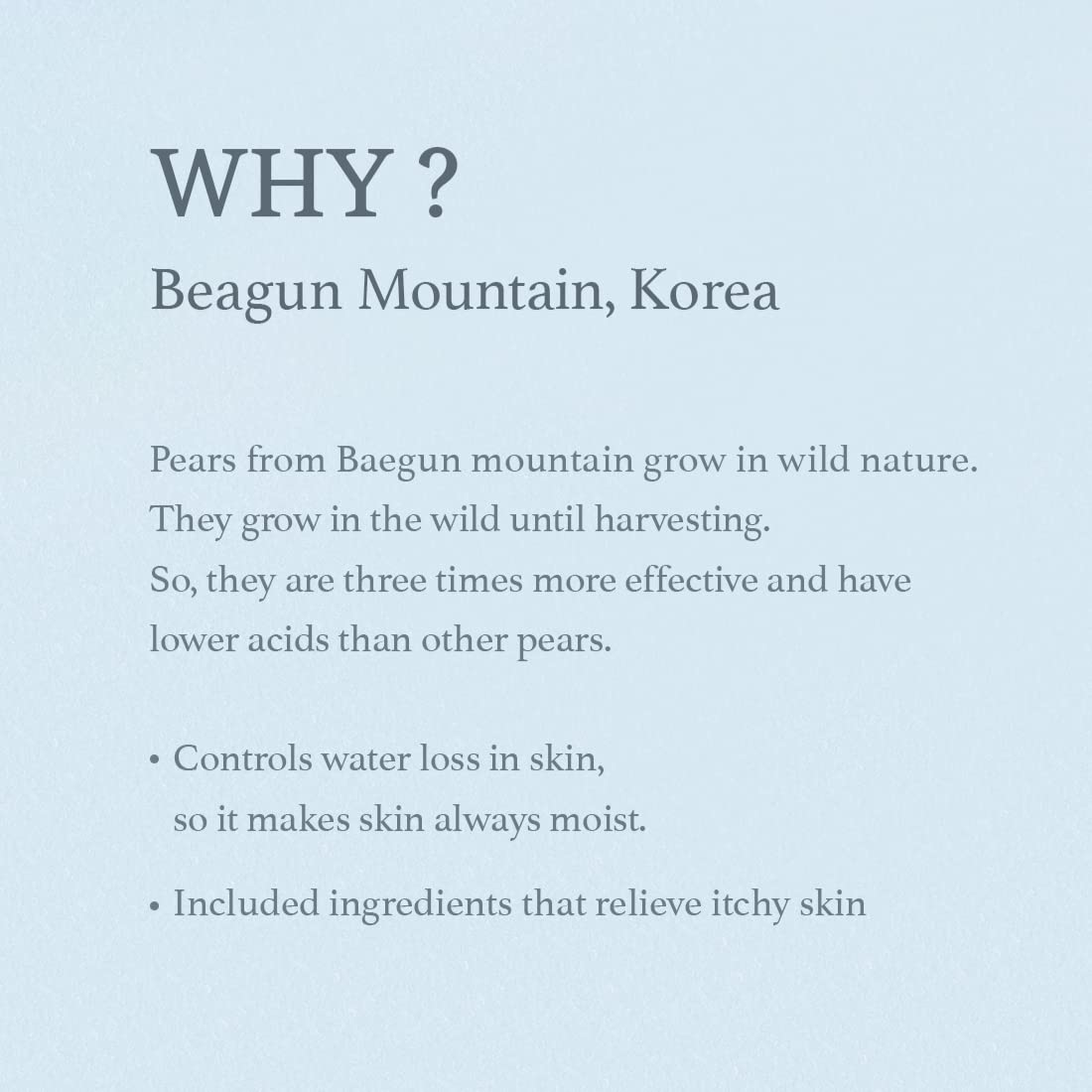 This serum contains 83% Wild Pear Leaves, which soothes and calms the skin as it forms a protective barrier to strengthen the skin. It has a watery, light, non-sticky texture, which replenishes moisture for dehydrated and irritated skin. Recommended for sensitive skin that needs hydration as well as a healthier skin condition.