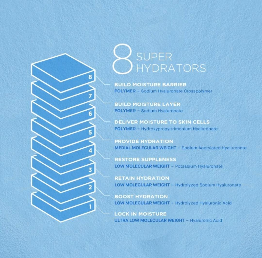 Water, Glycerin, Triethylhexanoin, Dipropylene Glycol, Caprylic/Capric Triglyceride, Cetearyl Alcohol, Polysorbate 60, Helianthus Annuus (Sunflower) Seed Oil, Niacinamide, Glyceryl Stearate, 1,2-Hexanediol, Stearic Acid, Beeswax, Glyceryl Stearate SE, Sorbitan Sesquioleate, Dimethicone, Panthenol, Sodium Hyaluronate, Hydroxypropyltrimonium Hyaluronate, Hydrolyzed Hyaluronic Acid, Sodium Acetylated Hyaluronate, Hyaluronic Acid, Hydrolyzed Sodium Hyaluronate, Sodium Hyaluronate Crosspolymer, Potassium Hyaluronate, Hydrolyzed Collagen, Collagen Amino Acids, Collagen, Soluble Collagen, Sodium Soy Hydrolyzed Collagen, Lecithin, Tocopherol, Tocopheryl Acetate, Allantoin, Arginine, Hydroxyethylcellulose, Xanthan Gum, Ethylhexylglycerin, Disodium EDTA, Adenosine, Fragrance, Citronellol, Butylphenyl Methylpropional, Limonene, Linalool, Alpha-Isomethyl Ionone