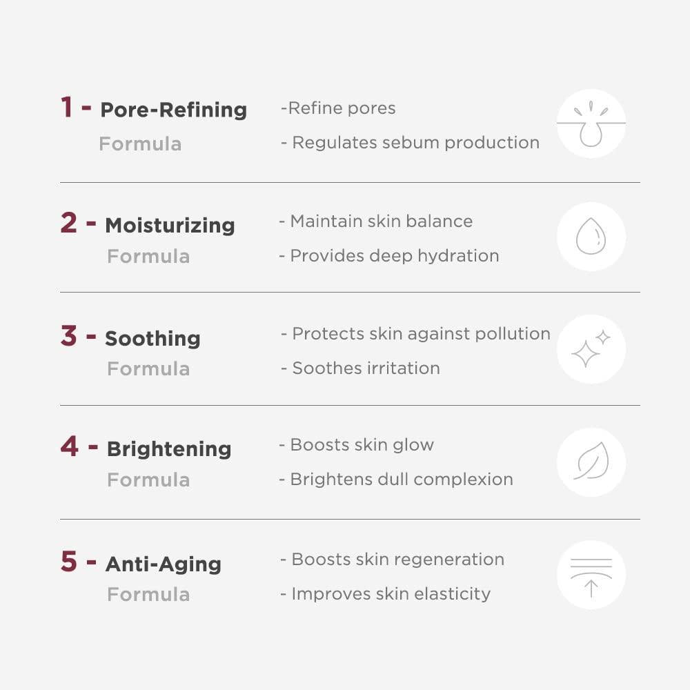 Removes dead skin cells, manages pores and balances oil and moisture levels