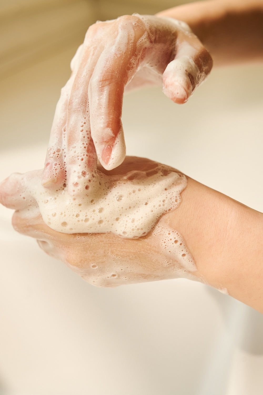 Apply an appropriate amount onto wet palms and rub together to create foam. Gently massage the face and rinse with lukewarm water.