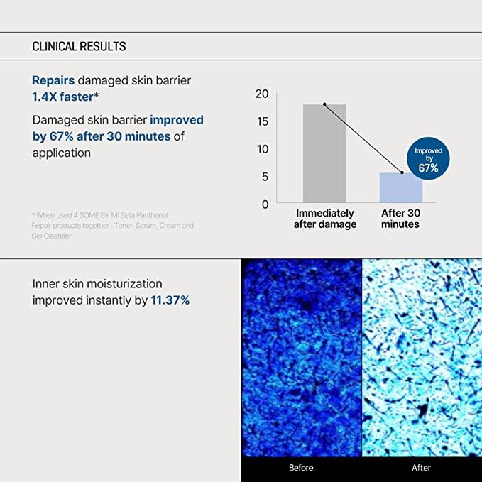 Beta-Panthenol Repair Toner is a moisturizing essence suitable for all skin types that quickly replenishes and prevents moisture loss by utilizing the "Aquaporin" water channel in the skin. The milky essence-type toner contains 8 types of hyaluronic acid that replenish and prevent moisture loss, while improving skin texture and managing the skin barrier damaged by dryness. This facial toner has been tested as non-comedogenic and hypoallergenic